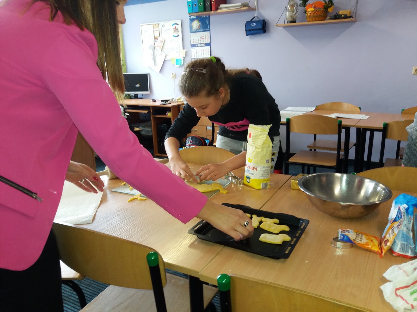 Piątkowe popołudnie 7 kwietnia uczniowie świetlicy klas IV – VI Szkoły Podstawowej w Bolkowie spędzili bardzo pracowicie. Motywem przewodnim tego dnia było upieczenie kruchych wielkanocnych ciasteczek. Wszystkie dzieci ochoczo i z pełnym zaangażowaniem ugniatały ciasto, by następnie je rozwałkować i foremkami nadać mu wielkanocny kształt zajączka, królika, pisanki. Gdy ciasteczka się piekły był czas na zabawę. Dzieci poznały historie świąt wielkanocnych oraz związanych z nimi tradycji. Wykonały także przestrzennego zająca – formę na słodki upominek.  Na zakończenie warsztatów każde dziecko otrzymało ciasteczka, które następnie udekorowało według własnego pomysłu. Mamy nadzieję, że zajęcia stały się zachętę do wspólnego pieczenia w rodzinnym gronie.